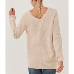 Pact Organic Cotton V Neck Knit Long Sweater Small Tan Cream