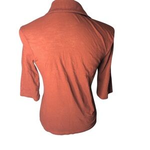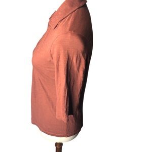 Pact Organic Cotton Wo's XS Henley Collared Top Shirt Brown Casual Basic Minimal