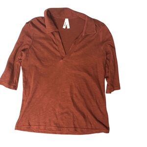- Henley Collared Pullover Top Shirt Brown Casual Elevated Basic Minimalist Lightweight