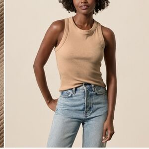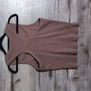 Ribbed cotton tank with stretch and a racerback. No signs of wear. Bust is approx 16 inches, length is approx 22 inches.