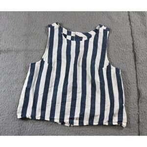 Pact Organic Womens Top Large Blue White Stripe Mariner The Canopy Button-Back