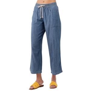 Pact Pants Womens Large Chambray Blue Wide Leg Ankle Crop Pull On Organic Cotton