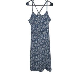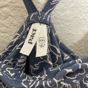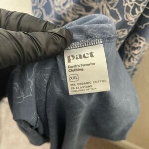 This Pact Plus Size XXL Fit & Flare Midi Dress is in the 'looking glass floral slate blue' pattern. It is made of 95% organic cotton and features a built-in shelf bra. This dress is perfect for a comfortable and stylish look.