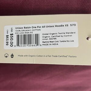 Pact Raisin All for One Unisex Hoodie NWT Size XS