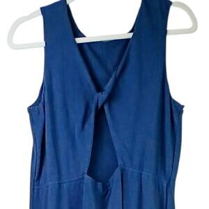 Pact SZ XL Organic Cotton Fit & Flare Midi Dress Twisted Back Detail Blue