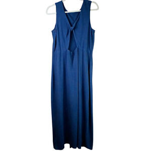 Pact SZ XL Organic Cotton Fit & Flare Midi Dress Twisted Back Detail Blue