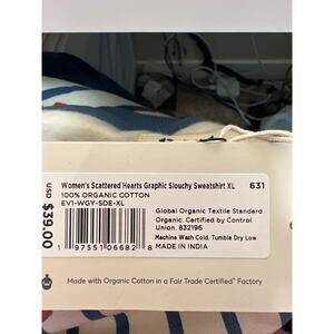 Pact Scattered Hearts Graphic Organic Slouchy Sweatshirt Size XL New NWT