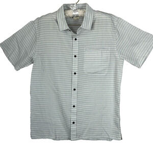 Pact Shirt Men's Size L Blue Striped Button Up Short Sleeve Organic Cotton