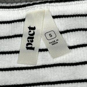 Pact Shirt Womens Small White Black Stripe Henley Ribbed Organic Cotton Top