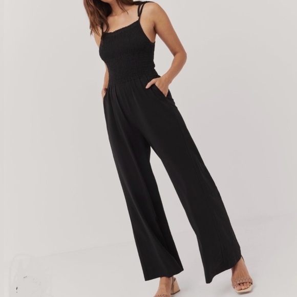 Pact Soirée One And Done Jumpsuit Smocked Bodice Black Size Medium