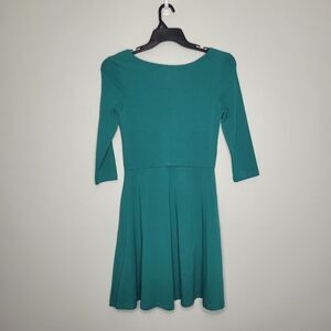 Pact Teal Green Fit and Flare Pockets Organic Cotton 3/4 Sleeve Dress Size small