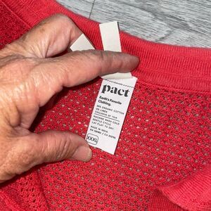Made of a lightweight and breathable linen and cotton blend, this hoodie is machine washable for easy care. The red color adds a pop of color to any outfit and the solid pattern is versatile and timeless. This top is a size 3XL and has a relaxed fit for maximum comfort. Ideal for travel or the beach, this Pact top is a must-have addition to any wardrobe.