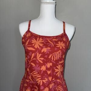 Pact Woman’s Sz L Fit and Flare Strappy Midi Dress Pink Pockets Organic Cotton