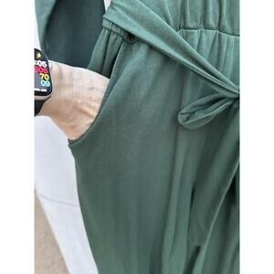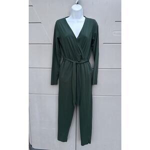 Pact Women’s Wrap Jumpsuit Small S | Organic Cotton Blend | Long Sleeve Green One Piece Romper