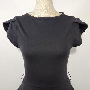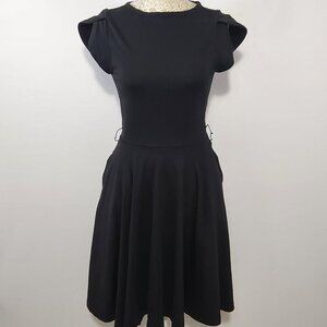 Pact Women's Size XS Black Organic Cotton Petal Sleeve Fit & Flare Dress Pockets