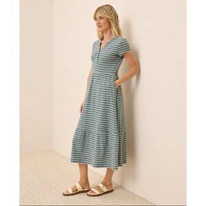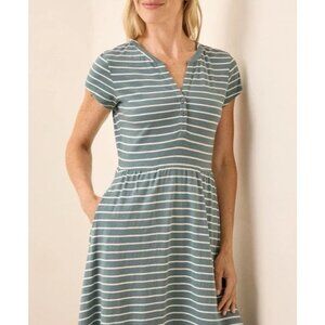 Pact Womens Small Relaxed Slub Henley Market Dress Short Sleeve Midi