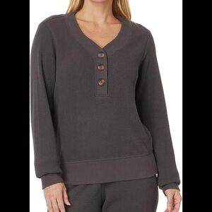 Pact Women's Thermal Waffle Henley Pullover Gray Size XL