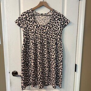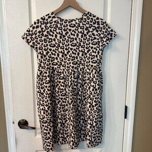 Pact | XS Organic Cotton Pink Leopard Revive Baby Doll Tiered Swing Mini Dress