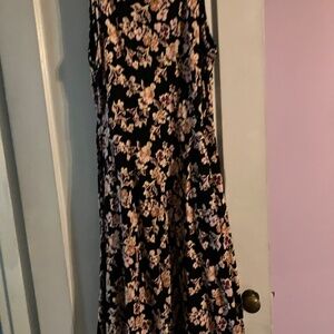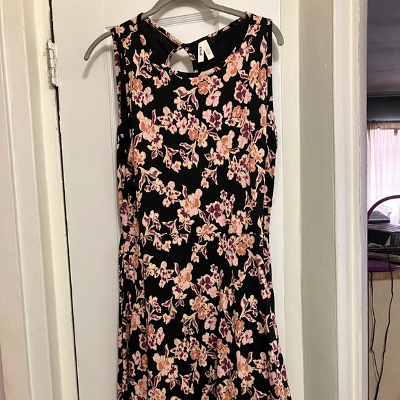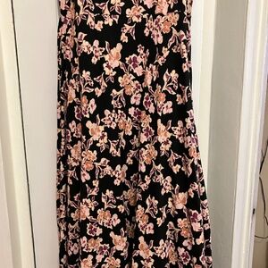 Pact fit and flare XL midi keyhole dress brown with pink flowers