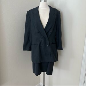 Very cute Brooks Brothers suit with padded shoulders. The blazer has a size 12 tag and the skirt has a size 10 but I think it may have be tailored. Measurements for both will be below. The suit is in excellent condition, no rips or stains.