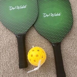 • Includes: Two wooden paddles and a durable elastic ball.
