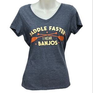 Fun + witty “Paddle Faster I Hear Banjos” v-neck tee — super soft tri-blend, flattering slim fit, easy to style with jeans/shorts. Excellent condition.