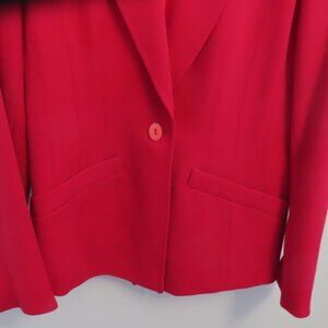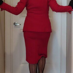 Paddy Campbell Red Wool English Suit, Size 4 (U.S.) Label says "8" but this is an English suit = 4 in American size. Beautiful, impeccable red wool suit, very cutaway in the waist, one button. Invisible zipper for slim fit mid knee length skirt. Beautiful, could be couture.