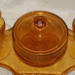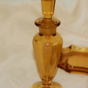 Paden City Elegant Glass Amber Vanity Set (Tray, Powder Box & 2 Perfumes)