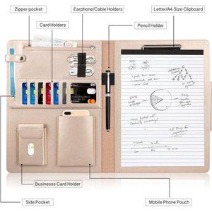 🧿1.[Practical Function] Toplive portfolio equipped with a clipboard, a document sleeve, a zipper receipts /ticket pocket, 5 card slots, a cellphone pouch, a business card holder, a pencil holder and two earphone/cable organizer, make you stay organized and professional during a business trip, an interview or a conference etc.