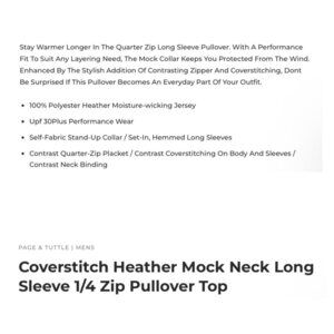 Page & Tuttle Men Size XL Heather Mock Neck Long Sleeve 1/4 Zip Pullover Top