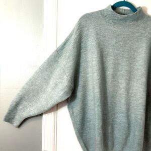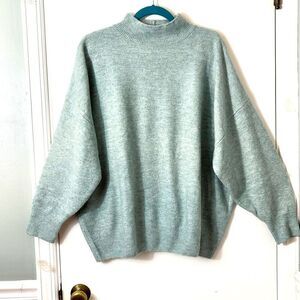 PageOne blue oversized drop sleeve sweater mock neck rib trim XXL.