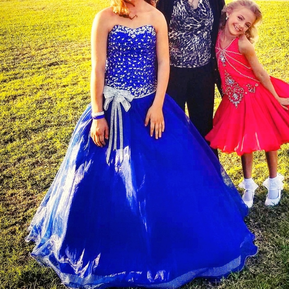 @mrsjensmith2007 my daughter wears a 16 girla but this has a built in bra area so juniors 00 or juniors 02. It has a tie up back so size can be adjustable.