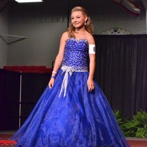 Blue with Rhinestones plus bottom lined with gems as well that really make it sparkle on stage