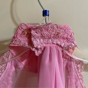 Vintage pageant dress in pink. Was wore once. Size is 12L but could fit as 00 or XXS. Zips from the back.