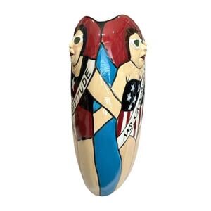 Excellent preowned condition with no cracks. There is a tiny chip that affects the glossy coating on the nose of one lady named Ms. Understood. Note in the photo. This is a very fun 3D days created by an artist by the name of.Janice Joplin who is no relation to the rock singer of the 60s. Created for the company called. Westland Giftware under the title.Funseekers. This vase is a more rare piece of the collection featuring six beautiful ladies who represent different areas of us, more mature ladies in life. Ms. Understood, PMS, Directed, Dot Com, Spent Youth, Attitude. Measurements are approximate and as close as possible. The vase is an oval shape with a scalloped opening. There are sweet roses painted on the inside. The vase is approximately 8 1/4 inches tall approximately 9 inches wide, the opening is approximately 6 1/4 inches long and 2 1/4 inches wide.  what a great gift for someone who is possibly retiring or entering a new phase of her life.