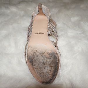 Pageant shoes. Worn once in a college pageant, and I placed TOP TEN in them. They're a size 9, but fits like a true 10. 3 inch heel. Not too high, but high enough.