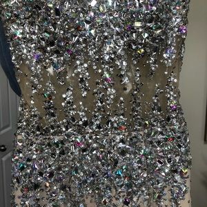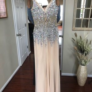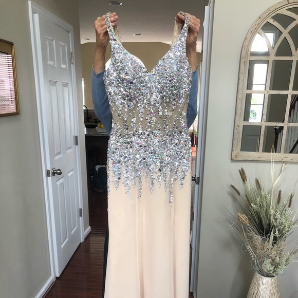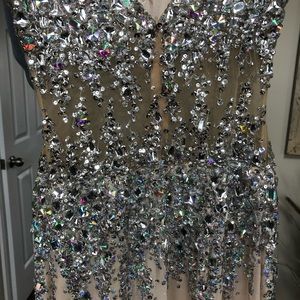 @mera002 the beads are not true crystal, more like a pageant dress crystal! It fits a size 4 now & is a Jovani : )