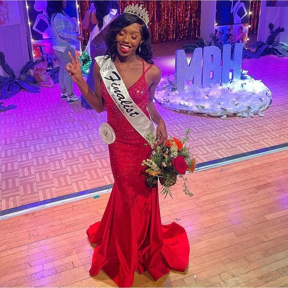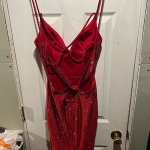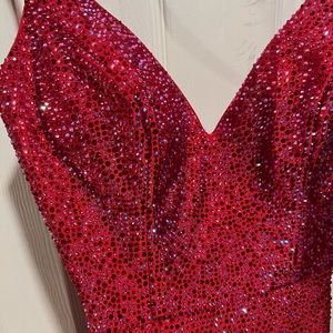 Red iridescent rhinestoned Ellie wilde prom pageant dress