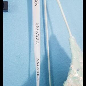 The dress is a size 0-4 and is a sparkling turquoise opal color. It has only been worn once for a pageant and comes from a pet-free home. Additionally, the dress comes with a cover for safekeeping.