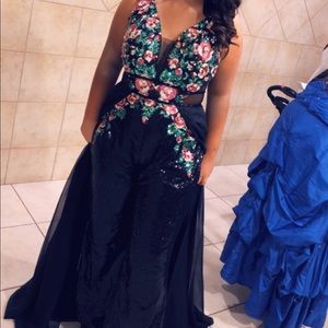 Jovani size 14 jumpsuit. Has been altered to a size 10. Worn twice and received best dressed and best runway. Has a cape on the back, jumpsuit is fully sequined.