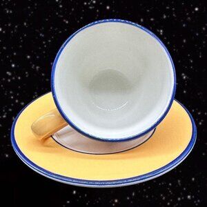 Pagnossin Ironstone Treviso Spa Yellow Blue Rim Cup and Saucer.