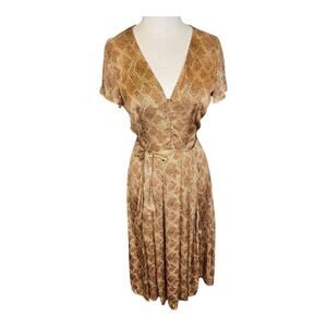 Paige Alayna Snakeskin Print Midi Dress in Bronze Size Small NWOT Belted Satin