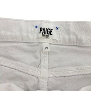 These PAIGE white denim culottes offer a fresh, contemporary look with their frayed hems and wide-leg cut. Pair them with a fitted top for balance, or go bold with a colorful blazer for a chic ensemble.