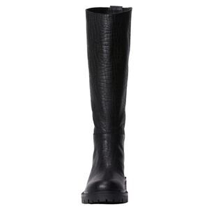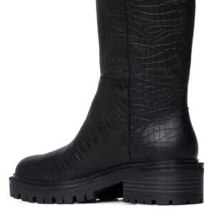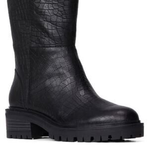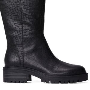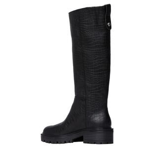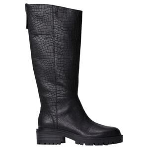 Paige Bella Black Tall/Knee High Boots Sz 9.5 Croc Embossed Leather Lug Sole New