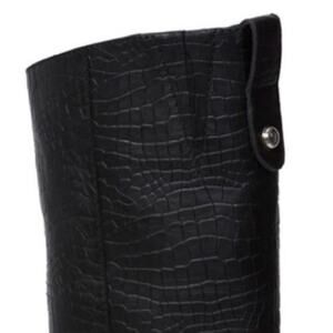 Paige Bella Black Tall/Knee High Boots Size 9.5 Croc Embossed Leather Block Heel Lug Sole Pull-On Style, New.