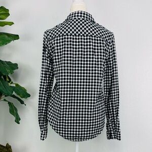 Paige Black & White Buffalo Checkered Plaid Long Sleeve Button Down sweater Tee