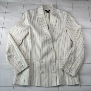 Paige Blazer Womens XS Cream Rosette Metallic Striped Linen Double Breasted