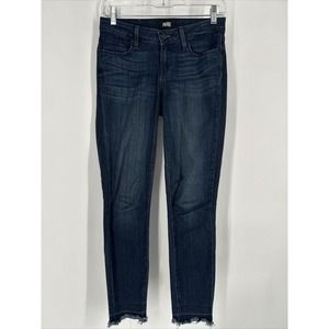 Paige Blue Dark Wash Verdugo Ankle Skinny Denim Jeans Sz 26x27 Stretch Raw Hem