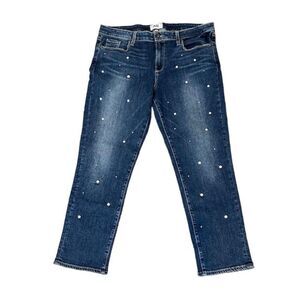 Paige Brigitte Pearl and Stud Embellished Ankle Cropped Jeans Size 32 Bling