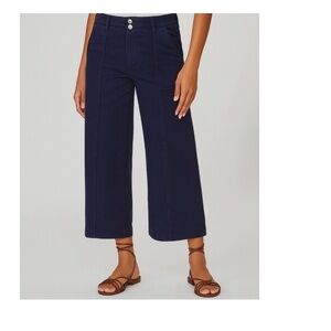 Paige Brooklyn Cropped Pants Wide Leg High Rise Front Seam Stretchy Blue Size 23